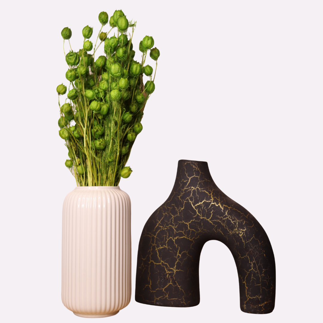 La Nigella damascena séchée, aussi appelée cheveux de Vénus, est une fleur graphique et aérienne reconnaissable à ses capsules vertes délicatement nervurées. Une fois séchée, elle conserve durablement sa forme, sa texture et son charme naturel, sans entretien.
