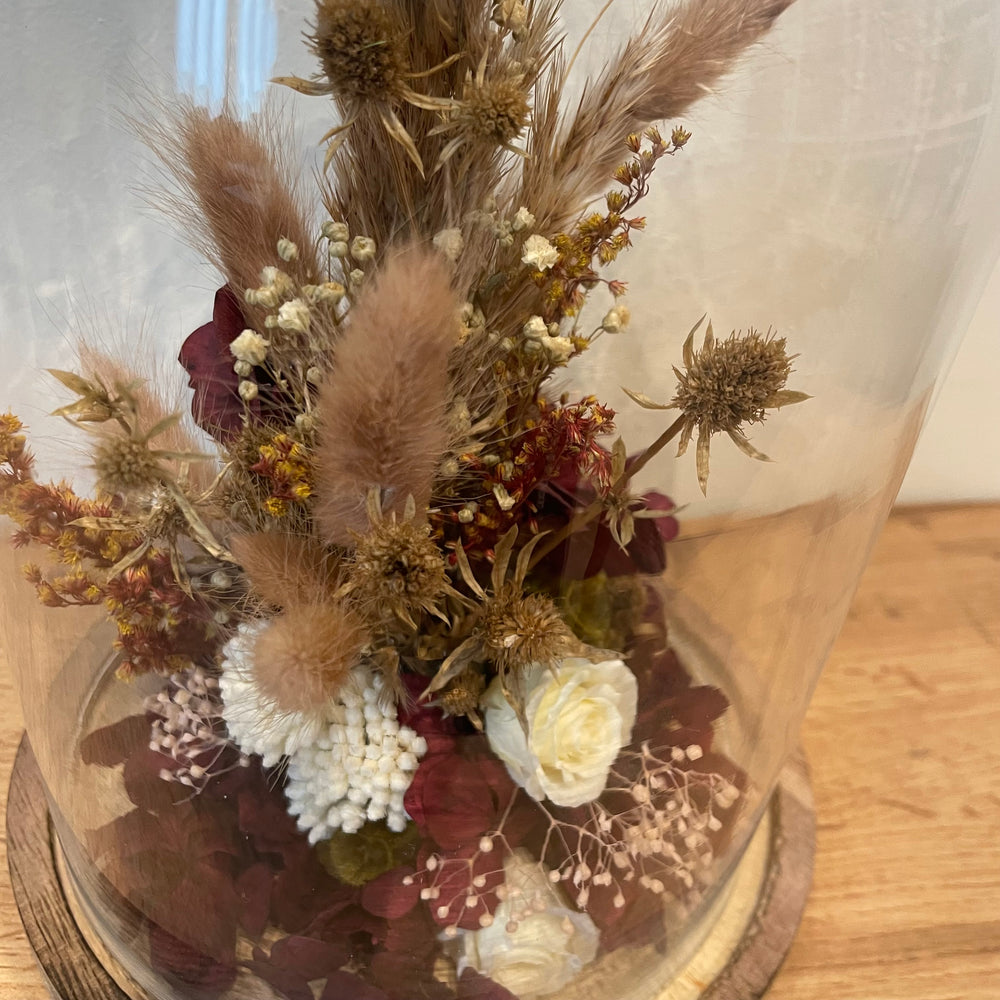 Ne cherchez plus ! Ateliers Ouchamp vous ont trouvé une solution alternative : les compositions fleuries sous cloche ! Elles ont tendance à jouer avec les rayons du soleil pour le plaisir de nos yeux. Parfaites pour vos milieux de tables, égayer un guéridon ou encore sur le rebord d'une de vos fenêtres.