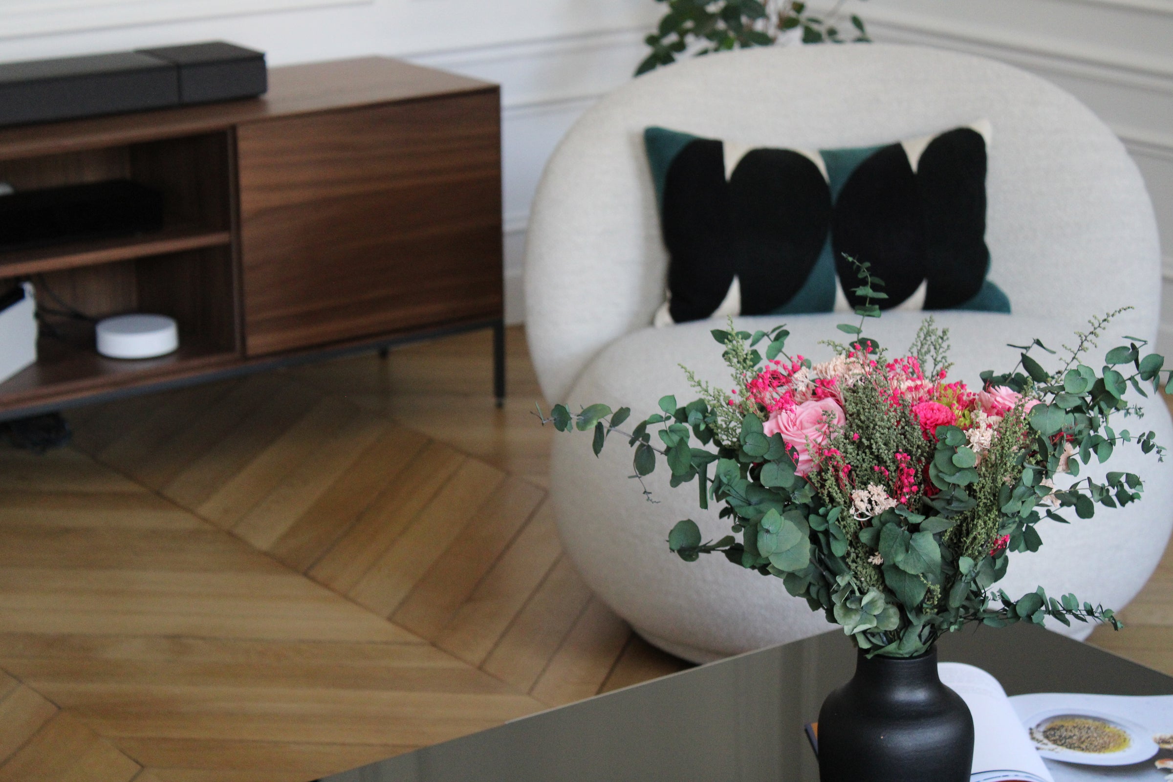 Ateliers Ouchamp accompagne les architectes d’intérieur et décorateurs dans la conception de décors floraux et végétaux pour des espaces de vie privés et des projets résidentiels haut de gamme. Spécialistes du végétal stabilisé, nous intégrons des compositions naturelles et durables dans des environnements architecturaux exigeants, sans contrainte d’entretien ni altération esthétique dans le temps.