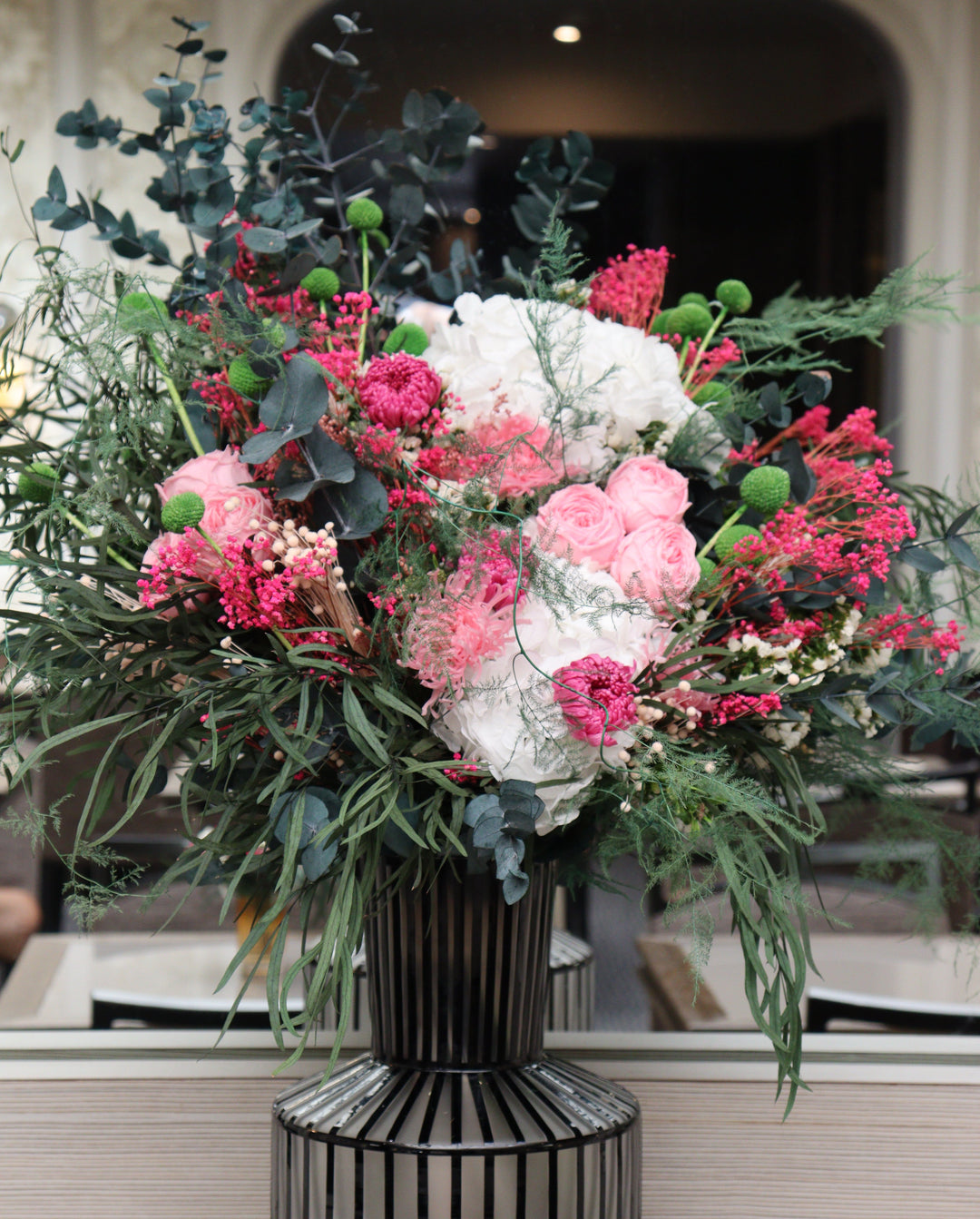 - Compositions florales : Pour un accueil impressionnant dans une entrée ou polus petit pour une table, nous travaillons des fleurs et feuillages qui ne fanent pas dans des formats diverses et variés.